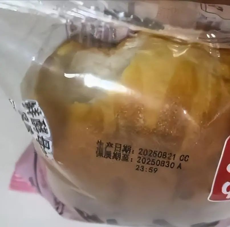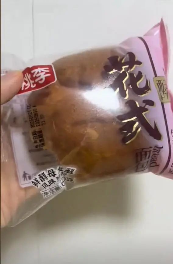 其发布的时长13秒的现场视频显示,这是一款桃李花式面包,生产日期为2025年8月21日,保质期到8月30日。这位网友拿在手里仔细查看,包装袋应未拆封,面包确实有个疑似咬了一口的豁口。