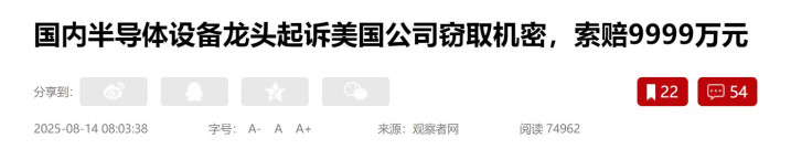日前中国一家半导体龙头企业发布公告,起诉美国半导体巨头应用材料公司,索赔9999万元,指控对方窃取了核心技术秘密。