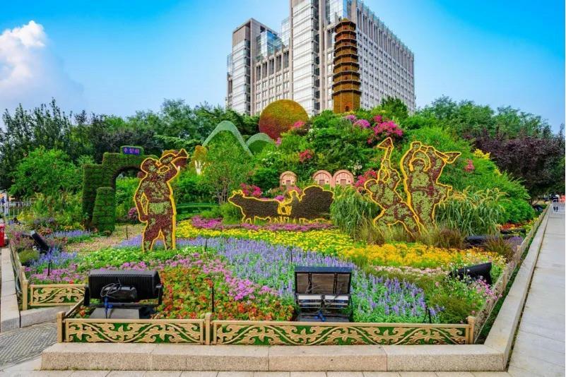 从建国门到复兴门,10座花坛串联起80余年的历程,既展现了中国人民抗日战争时期的艰苦卓绝、众志成城,也描绘了新时代国家日新月异的发展以及人民美好生活的场景。