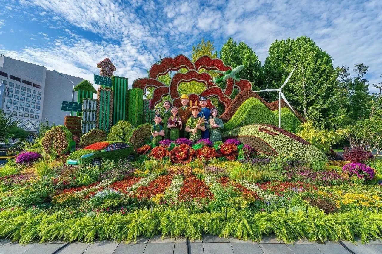 其中,太阳景观使用五色草黄草、绿草、红草等穴盘苗,通过渐变式栽植手法增强视觉层次;延安宝塔山用龙柏、三角梅、锦带花等数十种特色灌木,营造自然山体景观。