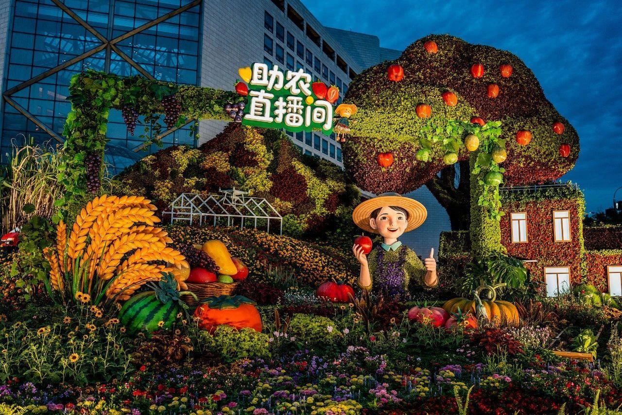地面花卉布置融合规则式与自然式风格,平型关下方的粉色小路采用穴盘苗栽植工艺,精选舞春花“影子”与五色草绿草进行精细配置,既呈现出细腻的造型质感,又丰富了地面景观的观赏性。花坛中,还应用了谷子、枣树,呈现经典历史场景。